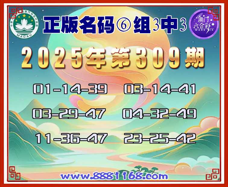 309期:〖正版名码〗 🏇⑥组3中3🏇